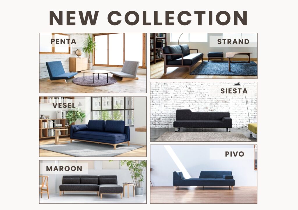 ■熊本店:SIESTA(3P+スツール)、PIVO(3P)、MAROON(カウチ)、VESEL(3P片肘)、PENTA