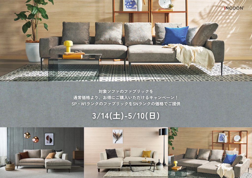 【INCOON】ファブリックランクアップキャンペーン開催中|3/14-5/10
